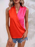 Two-Tone Surplice Neck Satin Tank